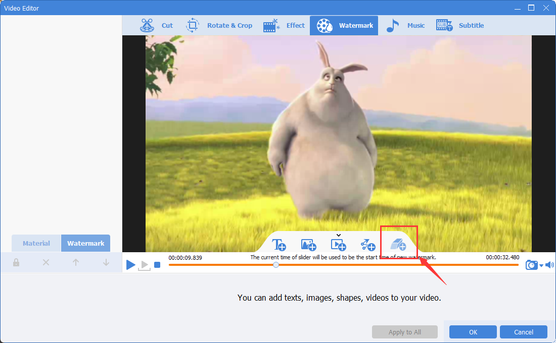 Multiple Edit ToolsMerge, crop, rotate, cut and transform video easily. Change and add background music, subtitles and remove watermark from video.