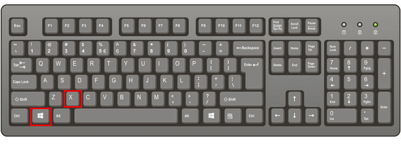 ① After the SD card is connected to the computer through the card reader, press “Win+X” on the keyboard.