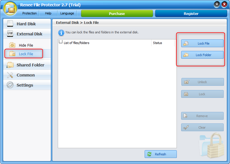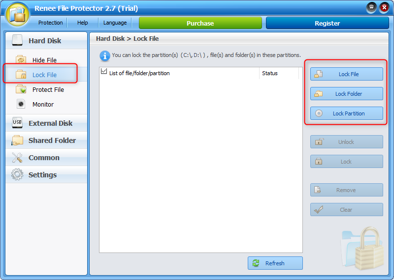 Overall protection Users can hide, lock or get other protection to files in local disk or USB disk.