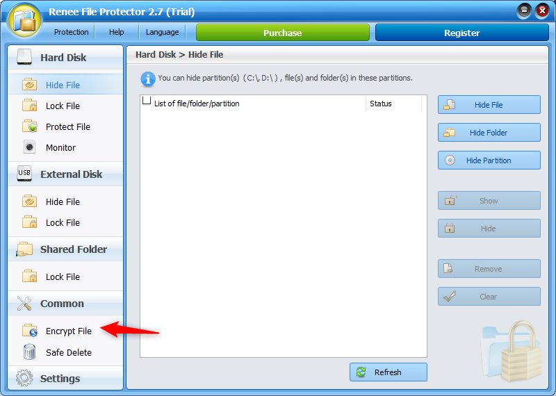 Method 1: (Virtual Encrypted Disk) Use Renee SecureSilo to encrypt files