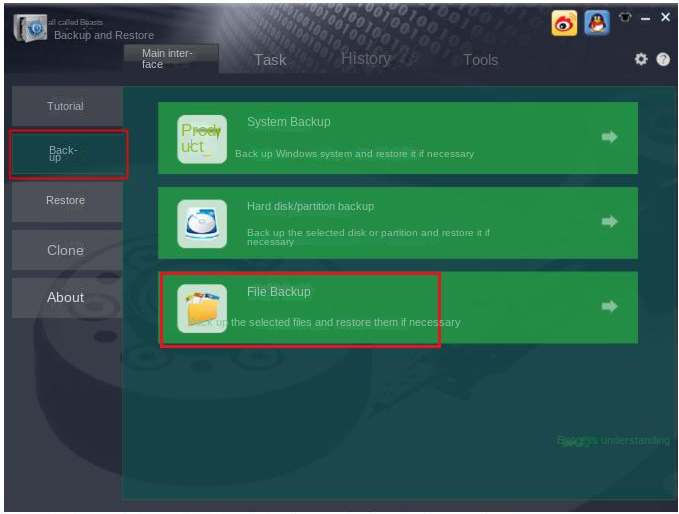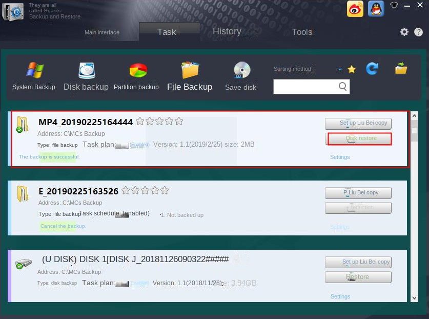 You can see the progress of all backups from Task. After the backup is complete, you can click the (Recovery) button to restore the file to the specified disk.