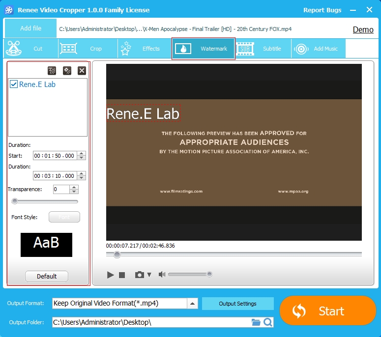 You can create the Text watermark and the image watermark at will. Besides, it supports set the start point and duration time.