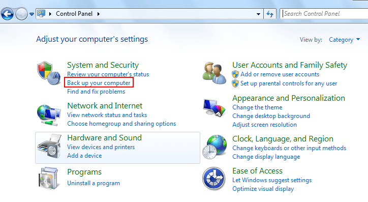 Solution 3: Set up and Restore the Backup Using Built-in Backup and Restore on Windows 7