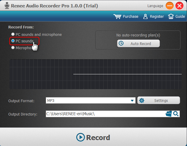 Step 3: Open Renee Audio Recorder Pro. Select to record sound from PC on the left-top corner.
