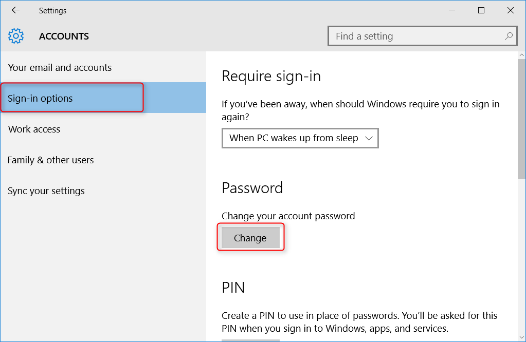 Step 3: Select “Sign-in” options in “Accounts” and then please click “Change” option under “Password” item.