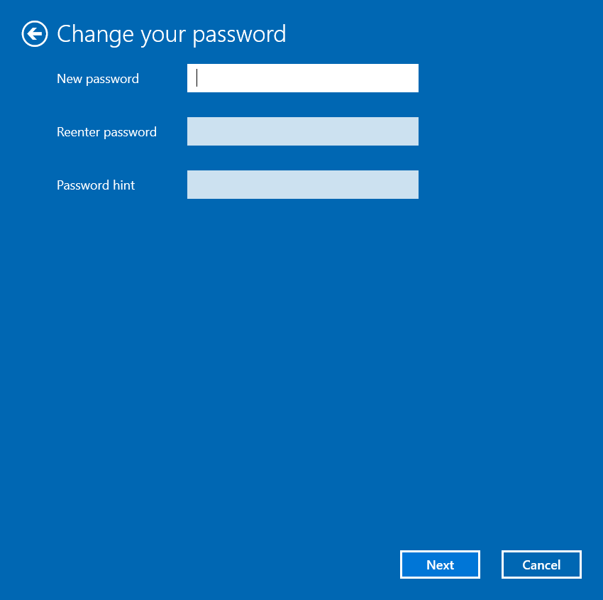 Step 5: Enter the new password for the account. You can also set the hint for the password here.
