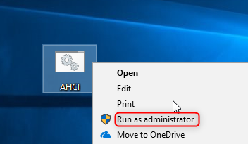 Step 5: Right click the AHCI.bat file and select “Run as Administrator”.