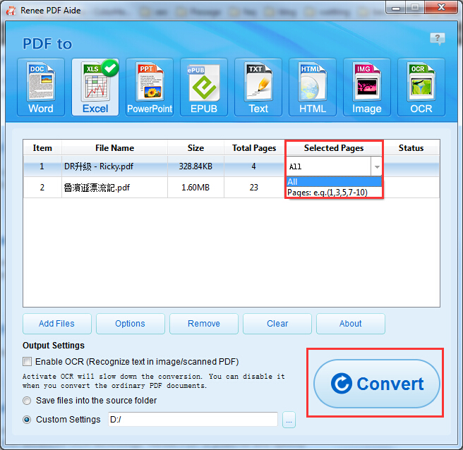 Step 3: Enter the page you want to convert if necessary. Then click “Convert” button to enjoy your conversion journey.