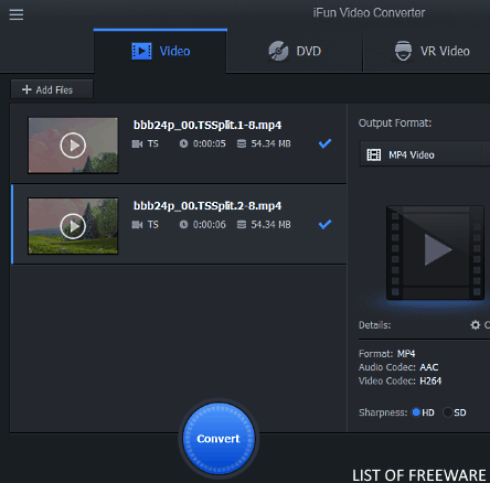 Download and install iFun Video Converter. Click on [Add Files] to select the TS video. Then, adjust the video and finally click on [Convert] to convert TS to MP4.