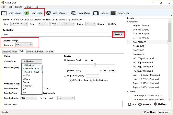 Step 3: Select the desired file format at (Output Settings)>(Container). In addition, video encoding, quality, etc. can be set.