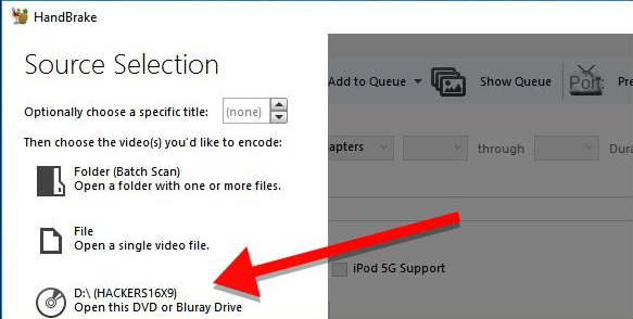 Step 1: Put the DVD disc into the CD-ROM drive of the computer, start the HandBrake software, and select the target CD-ROM drive in (Source Selection). It will then take some time to scan the titles on the DVD.