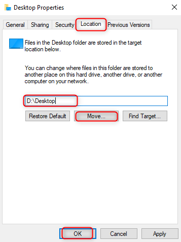 By default desktop files in Windows 10 are stored in the system disk which is usually to be the C drive. Most of users would like to directly save files or applications to the desktop, which results in the C drive getting full and the PC running slowly. In order to free up space of the C drive, it’s recommended to change the path of desktop and move files or applications to D drive or another non-system disk with more free space.