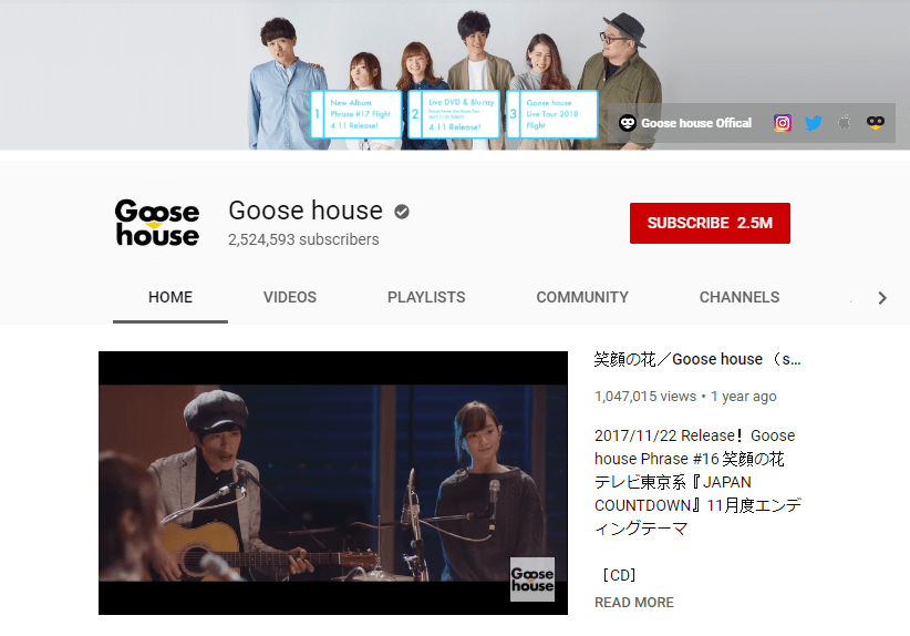 Goosehouse is a gathering of Japanese music fans. It mainly gives acoustic performances of cover songs. This group is welcomed in Japan.