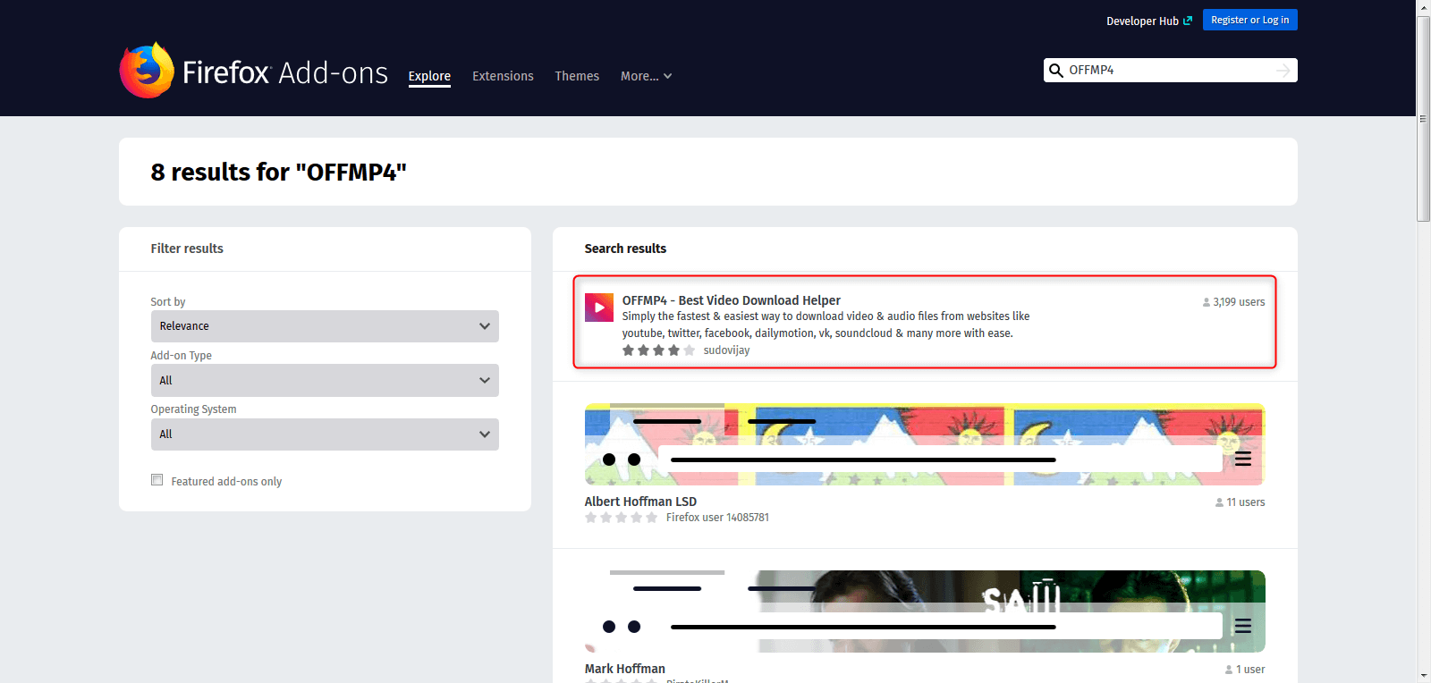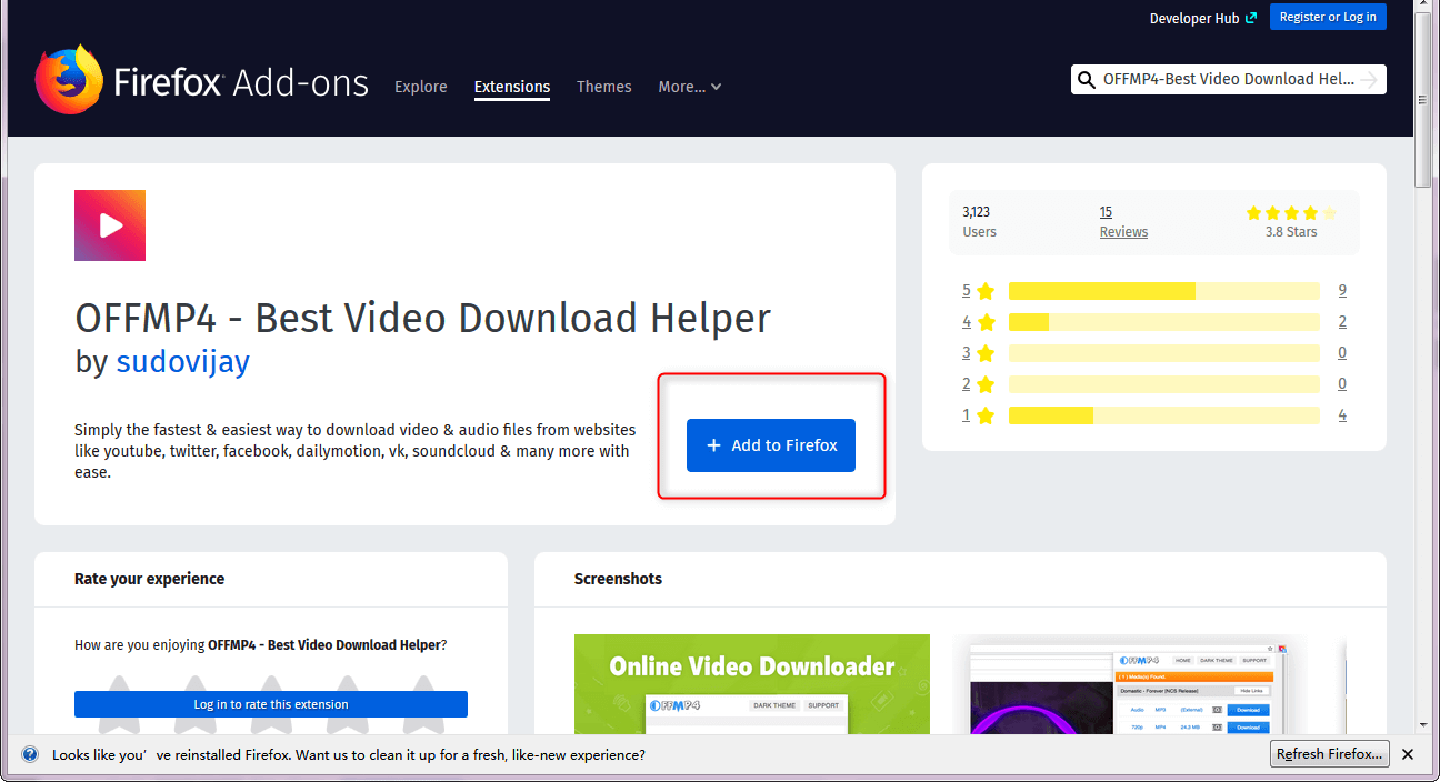 2. Add Extensions OFFMP4 (Only available in Firefox)