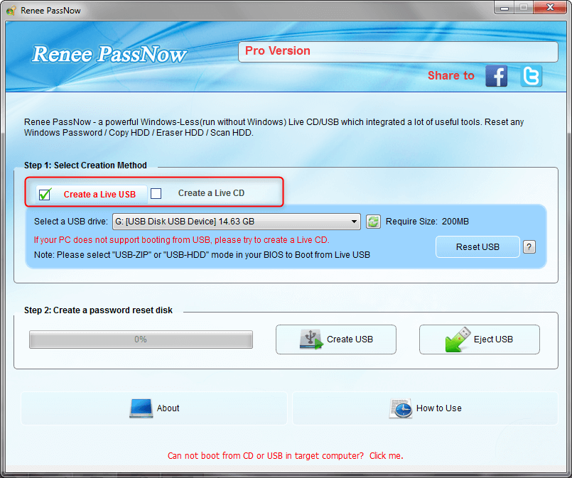 Step 3: Boot the target PC from the created password reset USB/CD/DVD.