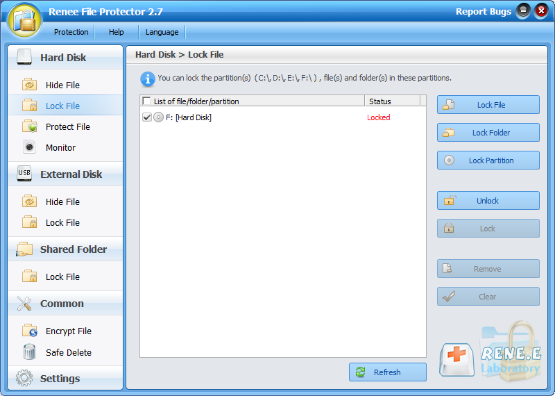 Overall protection Users can hide, lock or get other protection to files in local disk or USB disk.