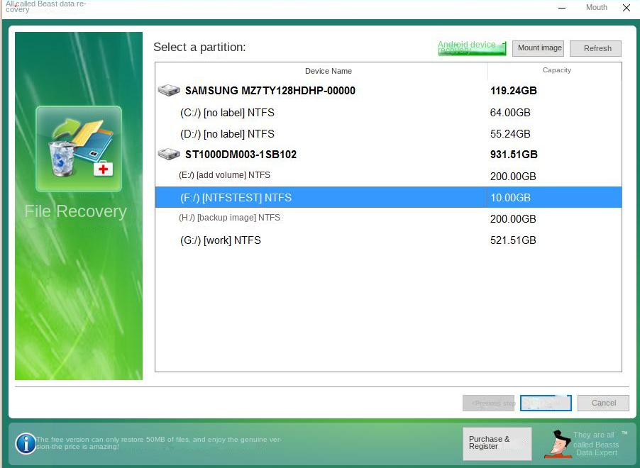 Multiple scan modes Fast partition/whole partition/whole disk scan;