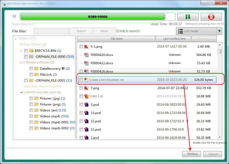Multiple scan modes Fast partition scan, whole partition scan and whole disk scan;