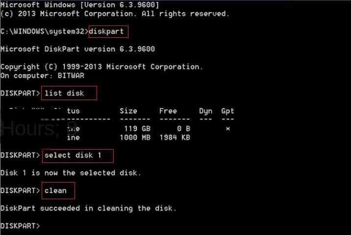 ● clean (will delete partitions and volumes on the disk, clearing all information)
