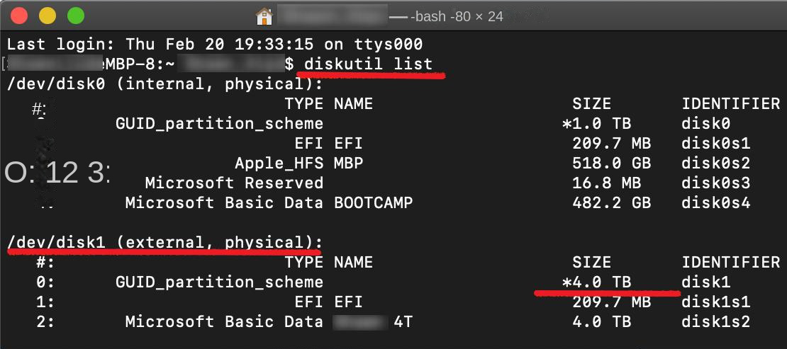 Enter diskutil list to list the disks and determine the disk number based on disk capacity or name.