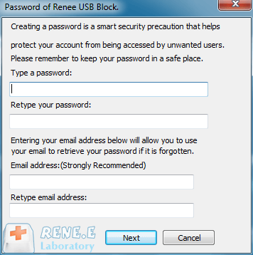 2. Set the master password and email address for Renee USB Block. Then you will be required to type in the password you set.