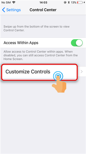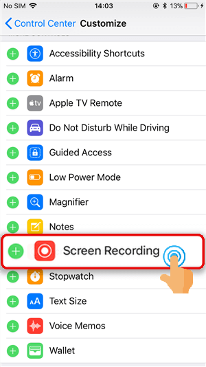 Step 2: Go to “Customize Controls” in “Control Center”. Click “Screen Recording” function to add it to Control Center.