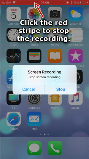 Step 3: If you want to stop the recording, just tab the red stripe on the top and then click “Stop” on the pop up window.