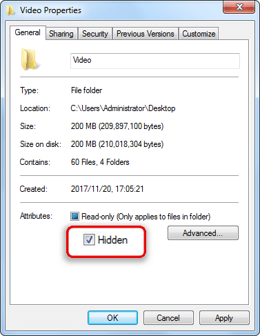 Step 2: Check “Hidden” in Properties Window. And then please click “OK”. You folder will disappear automatically.