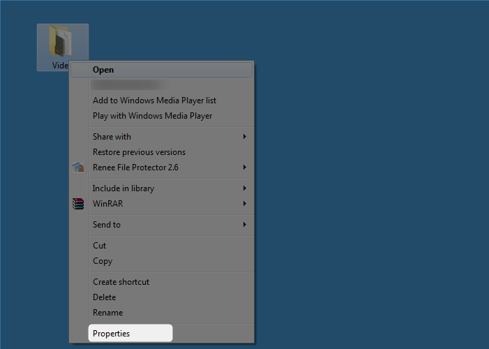 Step 1: Right-click target folder. And click “Properties” in the menu.
