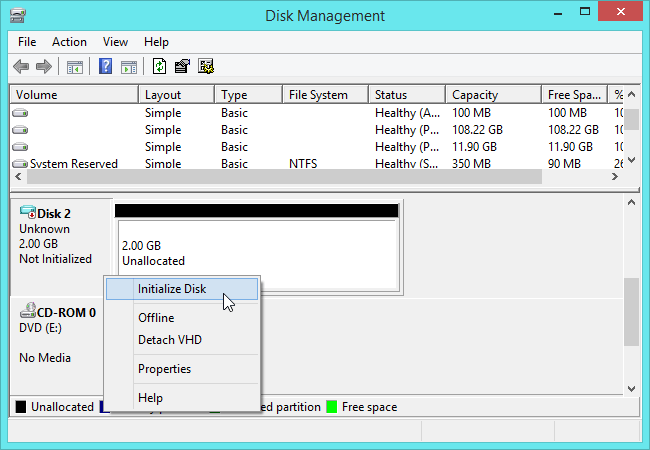Step 4: The new created disk will appear as another disk in Disk Management. Please right-click the disk and initialize the disk.