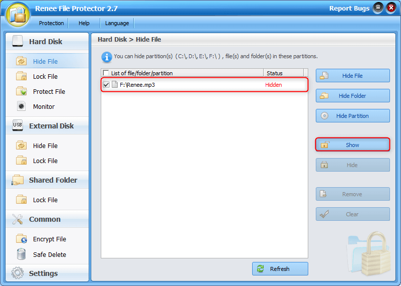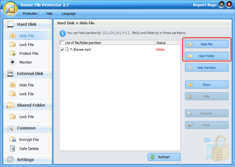 Renee File Protector is here to help you. This professional software allows users to hide and encrypt files and folders and block the other people to view without the correct password. That can stop the other people accessing your files and folders freely.