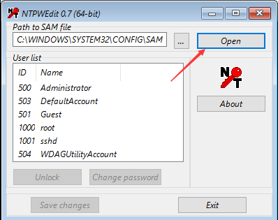 Save the changes by clicking “OK” Then click on “Save changes” and “Exit” in the NTPWEdit window to close it.