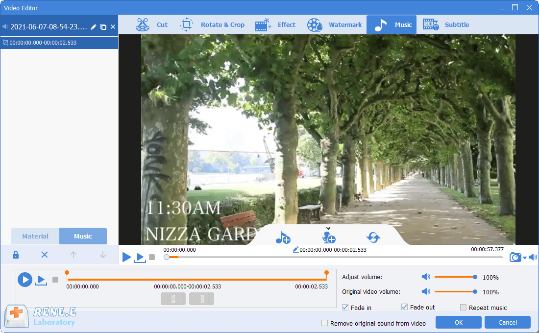 Besides, Renee Video Editor Pro can help user optimize and improve the video with many video editing functions like cutting or combining video clips, cut and rotate video screen, add starting and ending, transition, subtitles, filters, background music to video, and even remove original background audio from video. After editing, you can save the file in any video or audio formats.