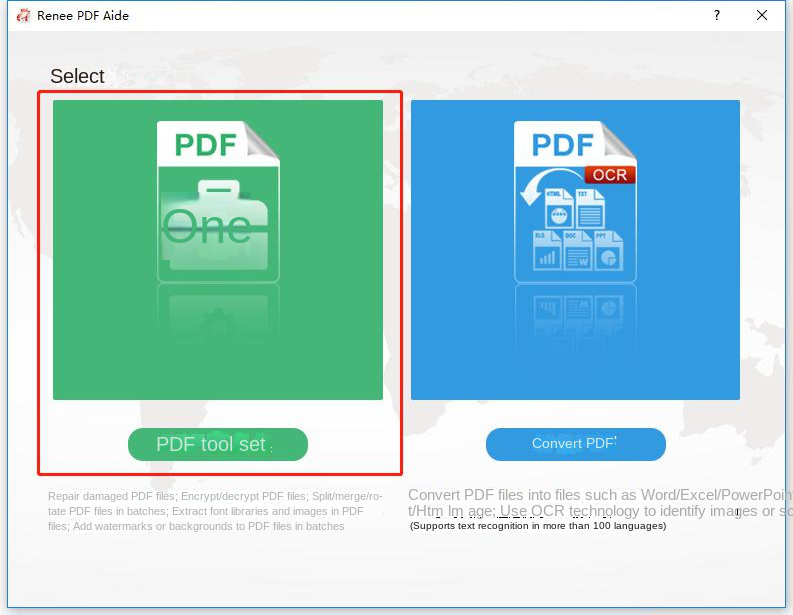 ① Download, install and open Renee PDF Aide, click (PDF toolset).