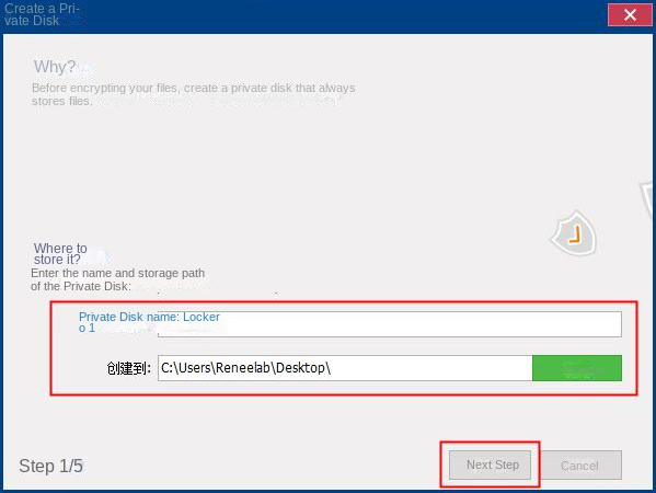 ③ Set the name and save path for the private disk, click (Next) to create a virtual disk.