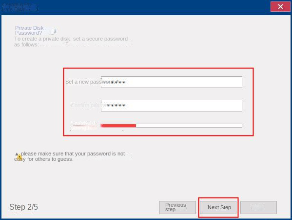 ④ After creating the private disk, set an access password for the private disk and click (Next).