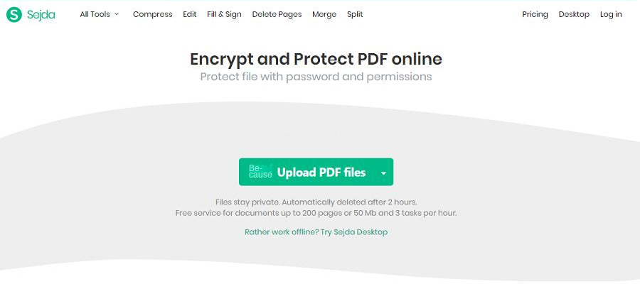 Sejda Online PDF Editor is a web-based PDF editor that can be used to work with multiple PDF files at the same time. The biggest advantage of using an online PDF editor is that PDF file encryption can be completed online without downloading and installing any software, but when encrypting files, you must ensure a stable network connection, otherwise the encryption will fail. In addition, this online encryption tool provides PDF document editing service of 200 pages or 50MB per hour for free.