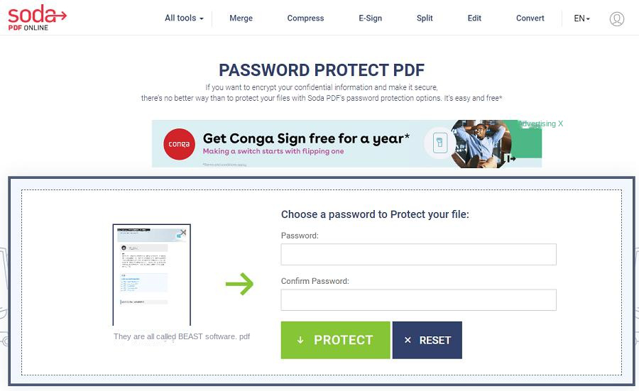 Soda PDF is another free and easy-to-use online PDF encryption website. By encrypting PDF files through this website, it can prevent illegal access and effectively protect confidential documents. The website uses the highly secure AES 256 encryption algorithm, which can greatly reduce the possibility of PDF files being cracked. The encryption operation is simple and suitable for all kinds of people. For specific operations, please refer to the introduction below.