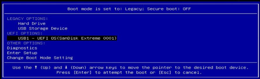 Restart the computer. If it doesn’t automatically boot from the USB installation medium, change the boot order in the BIOS or UEFI settings to prioritize the USB. To access the boot menu or change the boot order, press a key (e.g.,