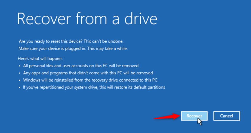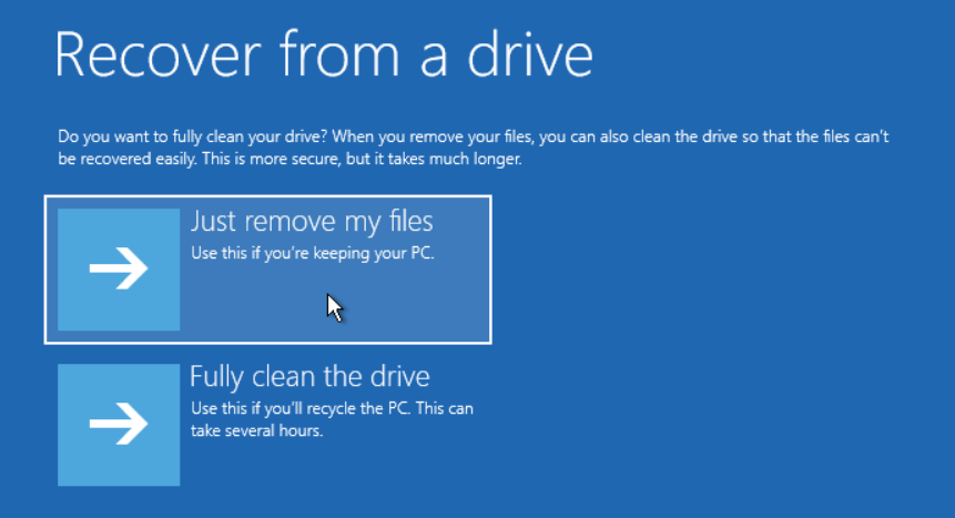 ⑥ Click (Recover from a Drive), and then select (Just remove my files) or (Fully clean the drive) according to your needs.