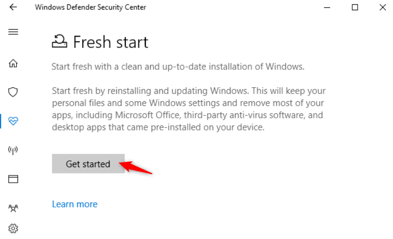 - Fresh Start removes third-party software but retains Microsoft Store apps installed by the manufacturer.