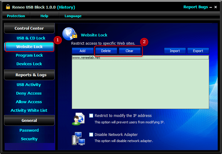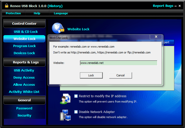 Renee USB Block is specially designed for providing computer with a better date security. Blocking website is one of its main function. Once the this function is applied, computer users can not make changes to the blocked websites without permission. If anyone want to unlock the websites, he or she will be required to enter the password of Renee USB Block which set by the manager. In other words, Renee USB Block is password protected. Anyone who do not have the correct password can not make changes to the blocked websites.