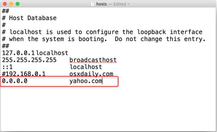 After opening the “hosts” file, please go to the bottom of the file and add the URL of the target site. And then, please save the file and replace the original “hosts” file with the modified one.