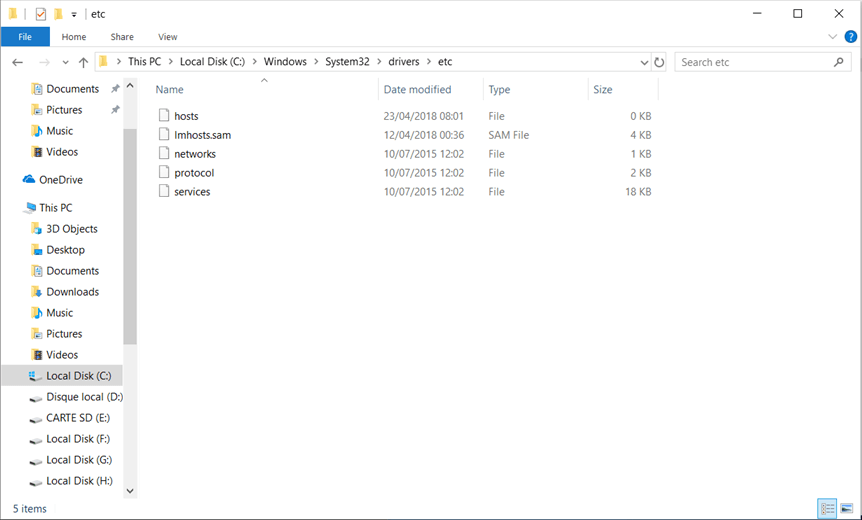 Step 1: Go to etc folder in the following path: C:\Windows\System32\drivers\etc