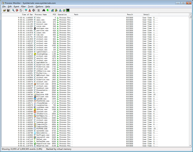 Designed by Windows Sysinternals, freeware Process Monitor can monitor activities of all process in Windows computer. When you launch Process Monitor, it will start to monitor the following all activities of the following 3 types of process: files system, registry and software. Also, filter function allows users to focus on specific targets. Process Monitor mixed the function of 2 software: FileMon and RegMon, which are used for system management, finding evidence in computer and test software. With powerful functions in Process Monitor, users can monitor computer and prevent computer from virus in a better way.