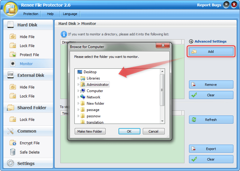 Step 2: Click “Add” button to add the target folder you want to monitor.