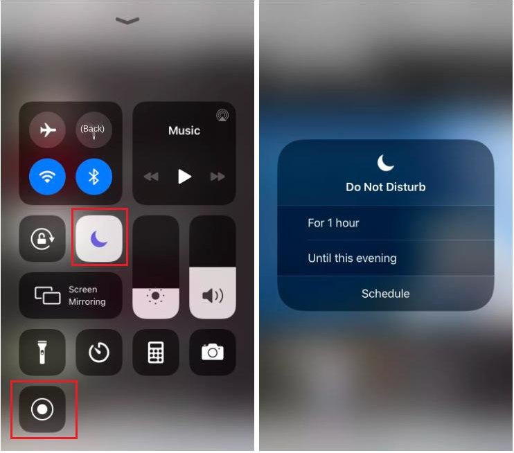 Before you start recording, it’s recommended to enable Do Not Disturb to ensure an uninterrupted session. Do this by tapping the crescent moon icon.