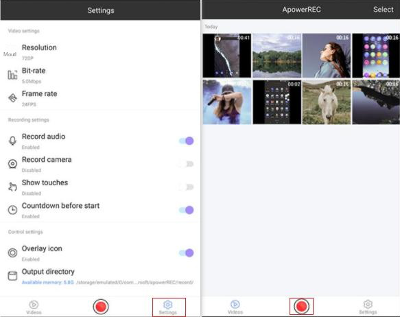 Recording target: Supports recording full screen, custom area, and recording images captured by the camera.
