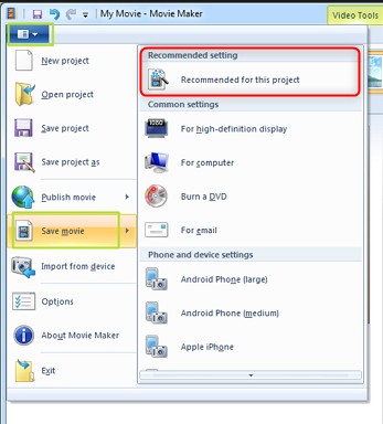 ③ After that, click [Files] to select [Save movie] > [Recommended for this project] then save the video.