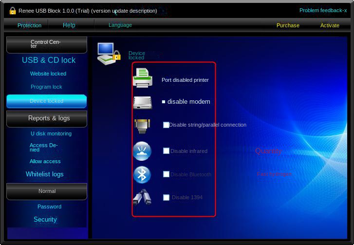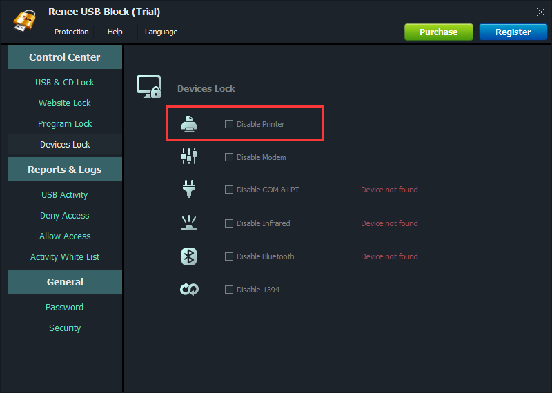 In addition, Renee USB Block can also lock websites, programs and devices, prohibit printing materials through printers, and set prohibition of accessing the network, etc.